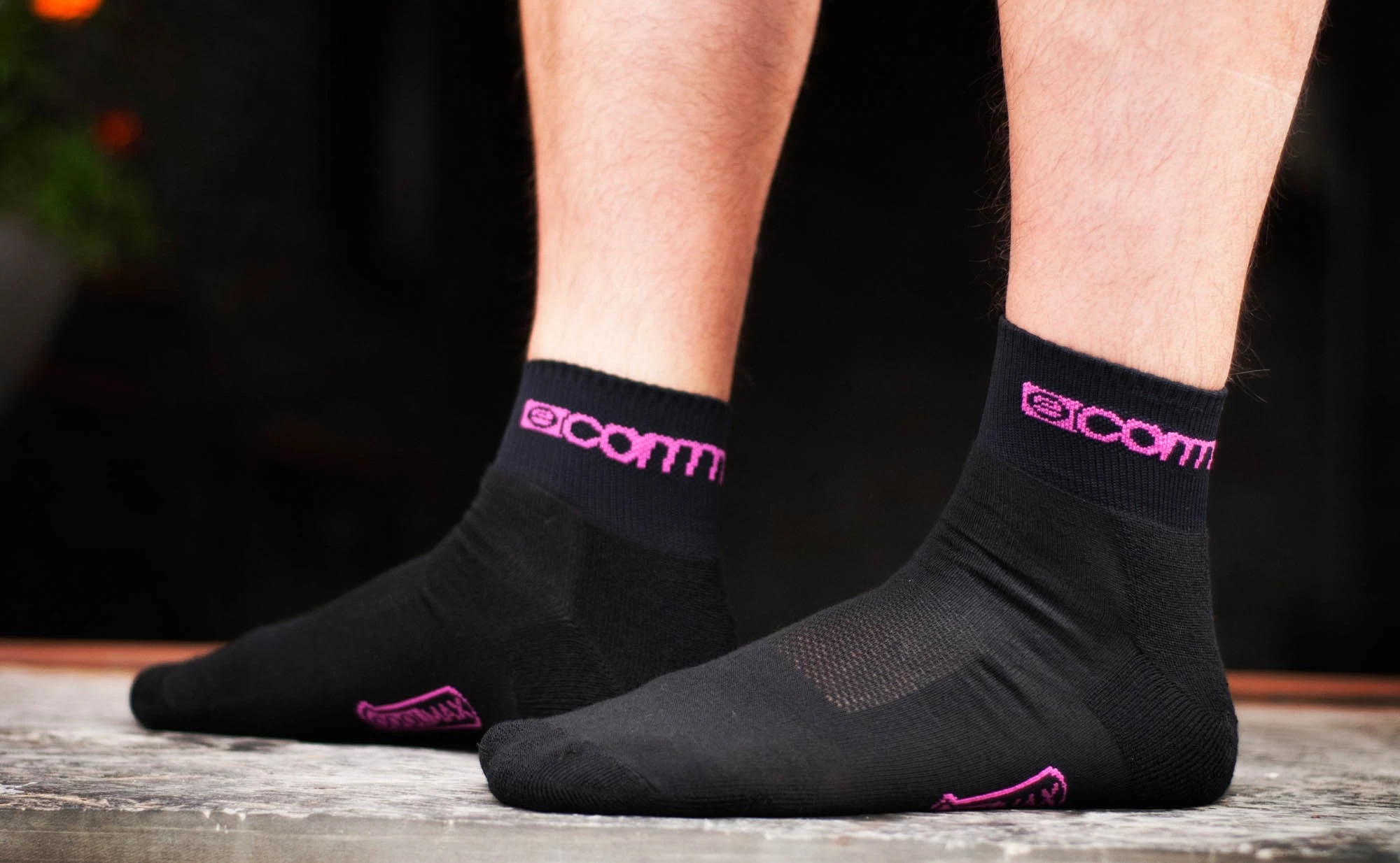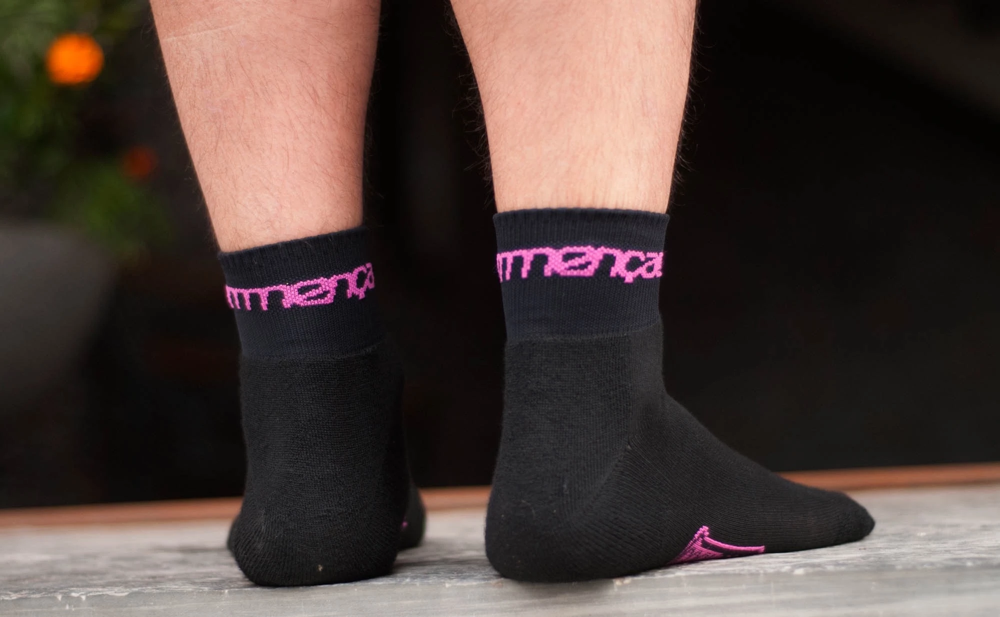 Chaussettes courtes (niveau cheville) en Coolmax® qui évacuent la sueur rapidement et laissent vos pieds, petits ou plus grands, bien au sec !– Entièrement noires sauf le logo COMMENCAL dessiné à l’horizontal sur le côté