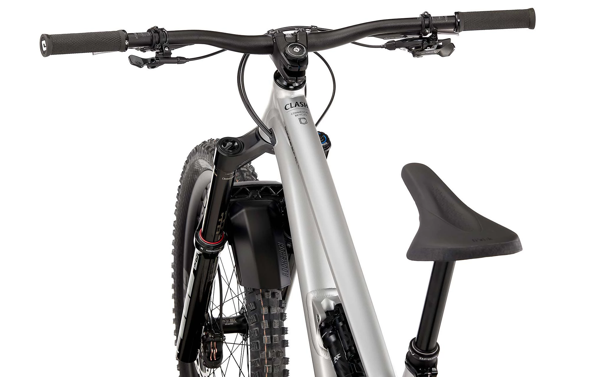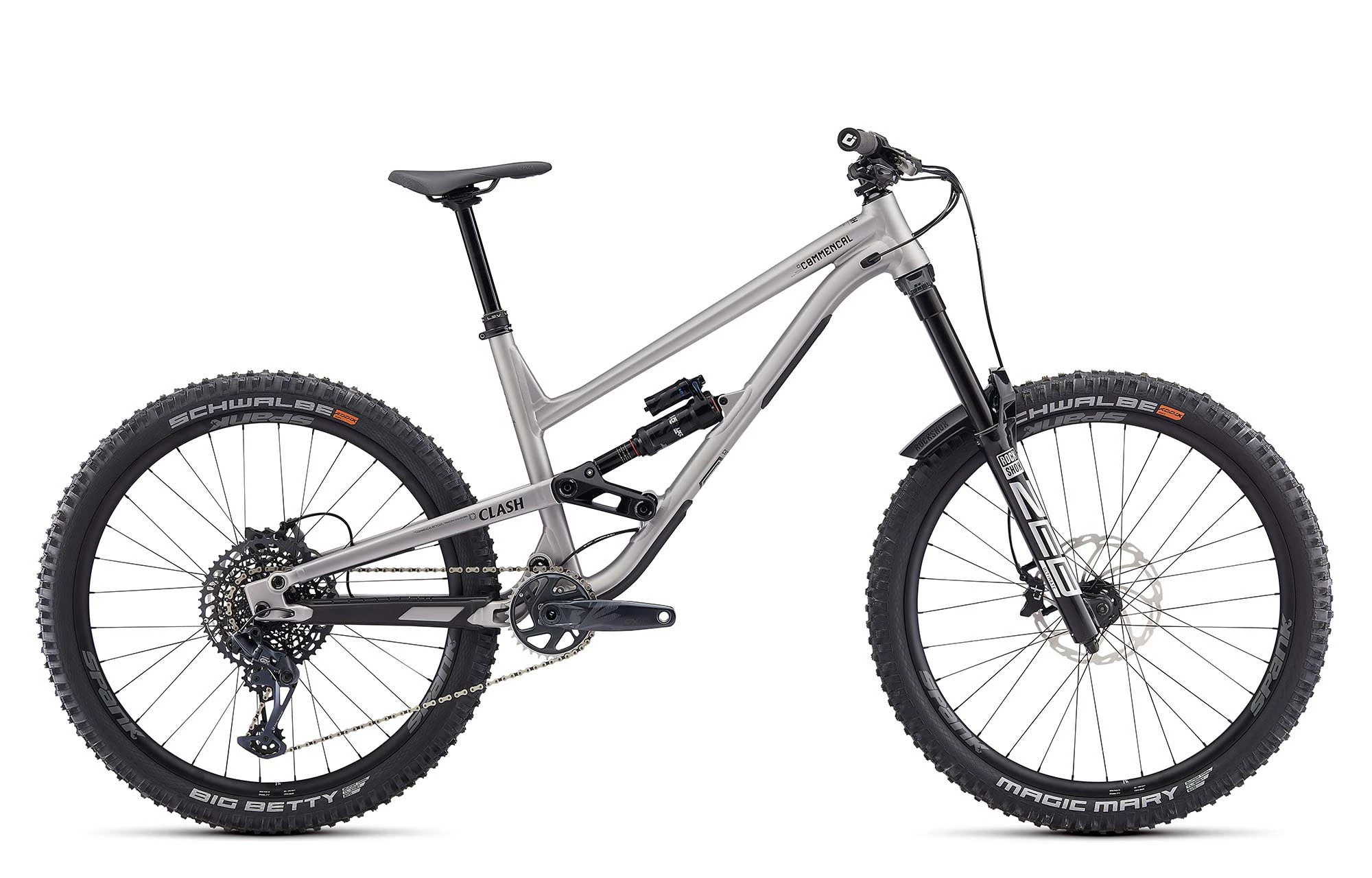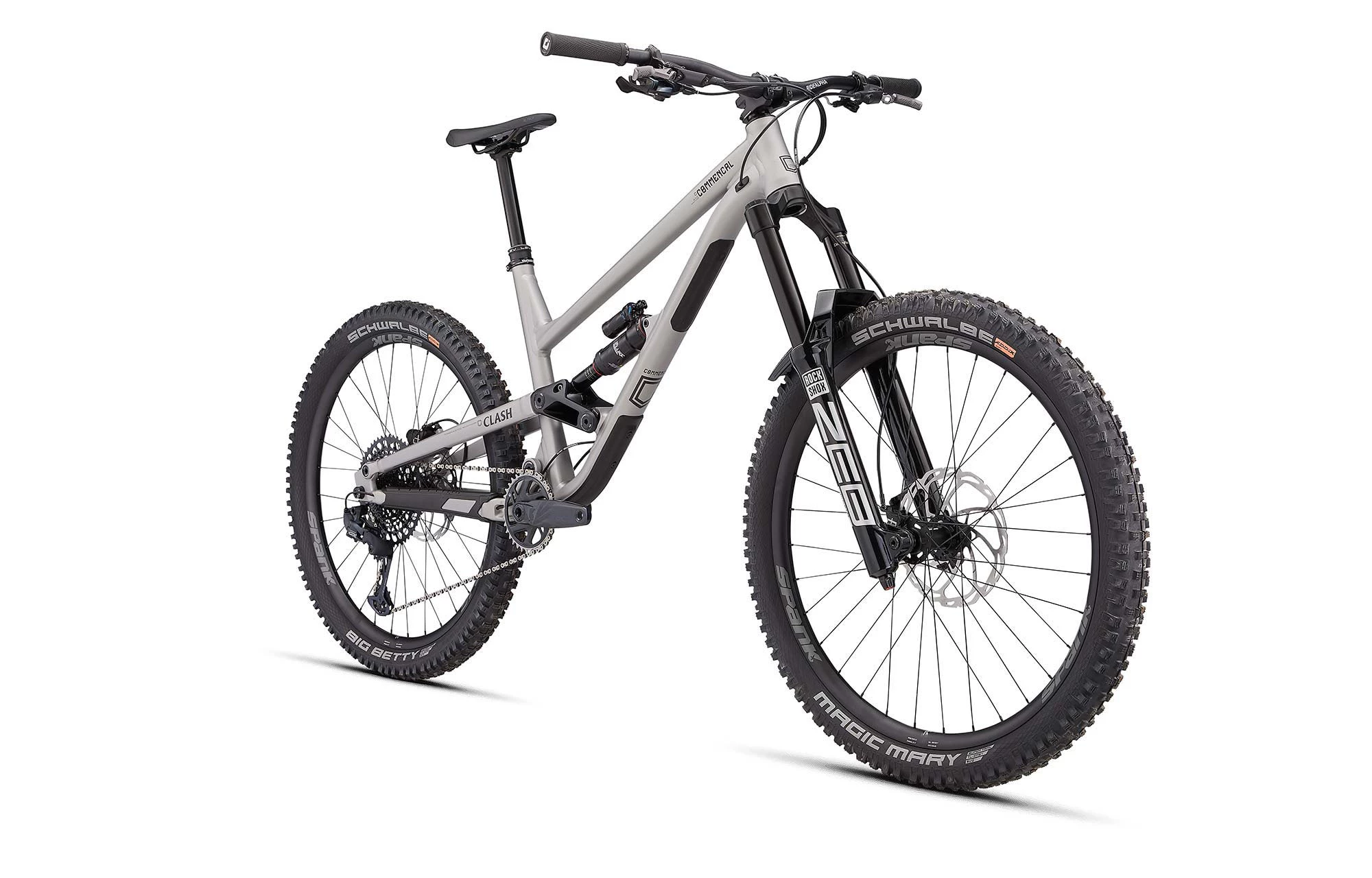 Il est équipé des meilleures suspensions ROCKSHOX actuellement disponibles pour l’Enduro. A l’avant, la nouvelle fourche Zeb Ultimate, du haut de ses 180mm de débattement et grâce à ses plongeurs de 38mm, offre tous les réglages indispensables, tant du côté hydraulique que de son ressort pneumatique Debonair entièrement repensé. A l’arrière, l’amortisseur Super Deluxe Select Ultimate. Le tout pour un maximum de grip et de performance sur les terrains les plus exigeants. La transmission SRAM GX Eagle 12 vitesses est dotée d’un étagement large en 10-52t. Un exemple de fiabilité et de précision qui permet d’aborder les liaisons avec sérénité et panache. Cette version toute particulière du CLASH est équipée des freins HAYES Dominion A4 en 4 pistons. Les mêmes freins que ceux utilisés par Angel SUAREZ et les pilotes du Team COMMENCAL 21 en Coupe du Monde de DH ! Dans une édition limitée Full Black, ils apportent fiabilité, progressivité et puissance en fin de course. Enfin, les roues SPANK Spike Race 33, au-delà de leur look agressif, sont conçues pour encaisser les chocs les plus rudes. Et il vaut mieux, car ce vélo est fait pour ça !