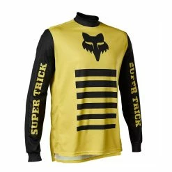 - |Description| PODIUM PROVEN MOUNTAIN BIKE JERSEY BUILT FOR DURABILITYIf you’re the kind of rider who comes into corners with too much pepper cause you know you’ve got the sauce, you need the new Supr Trik Limited-Edition collection.Built for hauling down the trail at blur speed, the Defend Supr Trik Long Sleeve Jersey delivers podium-proven race performance with style. With TruDri fabric to wick away sweat and keep you cool and dry, this jersey is made from recycled fabrics, has a trail-specific cut, and comes with a drop tail for coverage on the move.The Supr Trik Limited-Edition collection doesn’t just bring a modern twist to the vintage flavor of Fox graphics from years gone by, it channels the Super Trick ethos to go with it.Mountain bike jerseyTruDri fabric moves sweat away from the body to keep you dry and comfortableFull garment utilizes recycled fabricsTailored bike specific cut with drop tail and sleeves built to accommodate guardsMATERIALS100% polyester