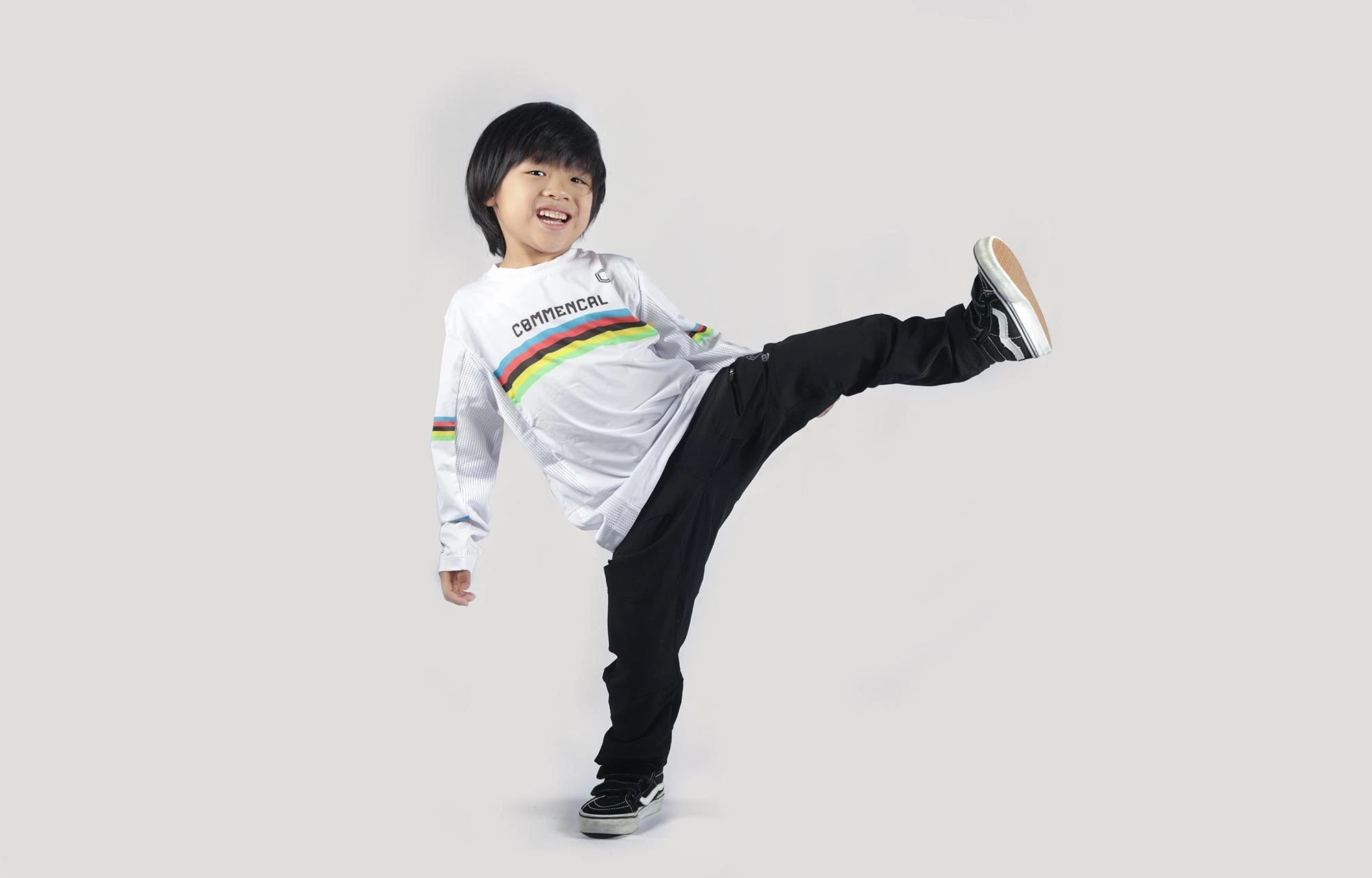 Les maillots COMMENCAL ont une coupe classique (regular fit). Nous vous conseillons de prendre la taille habituelle que porte votre enfant, ou la taille supérieure pour les protections et/ou une couche supplémentaire.