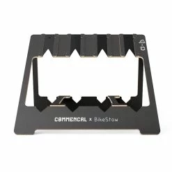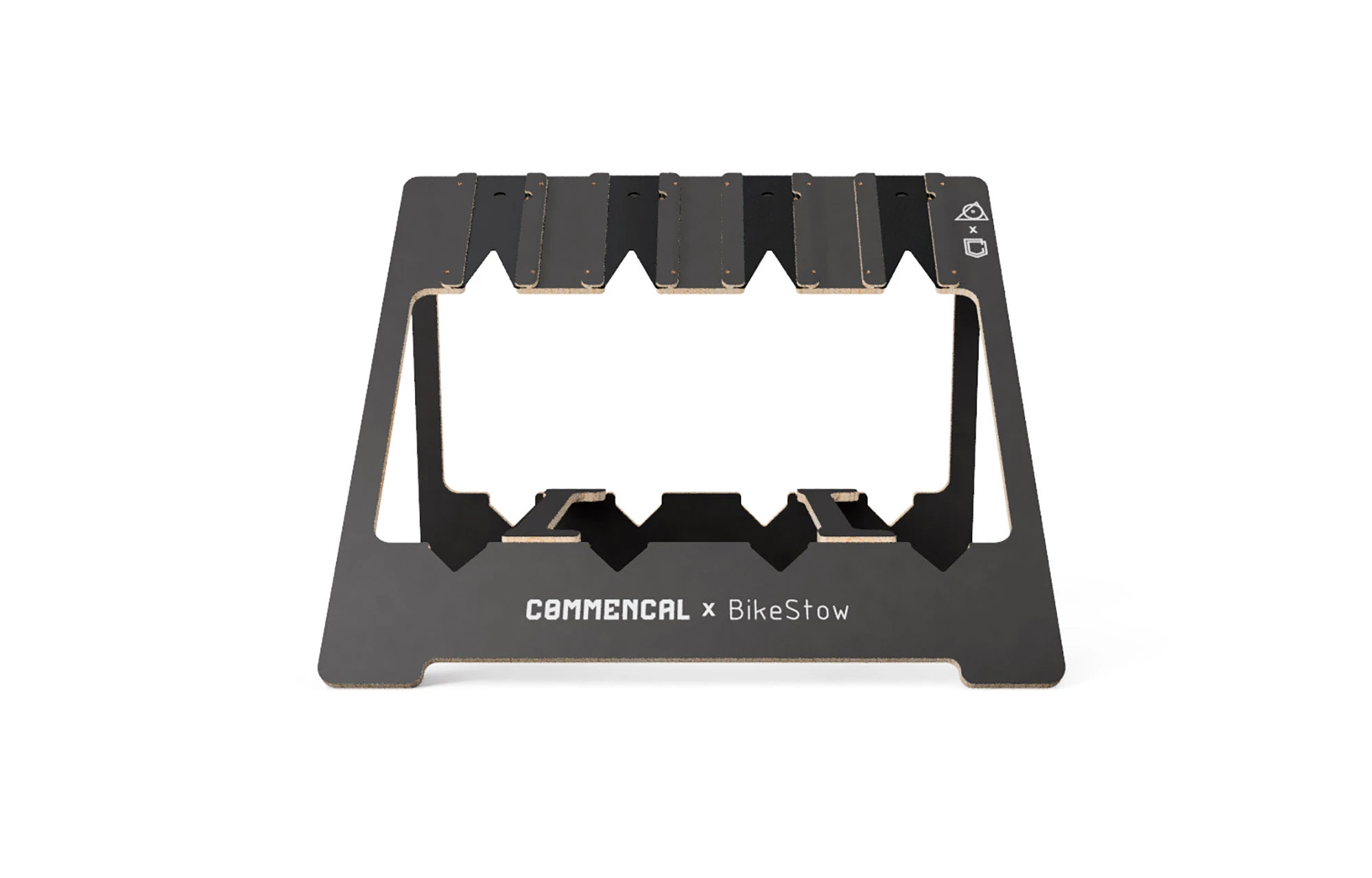 - |Description| Le Bike Rack COMMENCAL X BIKESTOW est LA solution ultime pour maintenir votre vélo et le protéger contre les rayures causées par le transport ou le stockage.Insérez la roue de votre vélo dans la fente du BikeStow, faites descendre la guillotine jusquau contact du pneu, verrouillez-la grâce à la molette et votre vélo est maintenant parfaitement maintenu et sécurisé.Robuste, élégant et ultra stable, il trouvera sa place aussi bien dans votre maison que dans votre van !Avec son renfort central aimanté et articulé, le replis du BikeStow est très ergonomique et rapide. Une fois replié il occupe une place minime.Testé et approuvé par le COMMENCAL CREW, ce rack est loutil indispensable pour tous les riders qui transportent leurs vélos en fourgon et qui, comme nous, sont de gros pratiquants de shuttle !Vous pouvez dire adieu aux leviers de freins éraflés, aux tôles de van bosselées et aux plongeurs de fourches rayés. Le gain de temps au chargement est aussi appréciable, une descente de plus par journée de ride minimum. 😉 »– Capacité des vélos : 4 vélos– Tailles de roues compatibles : 26″, 27,5″, 29″ (700C)– Section de pneus compatible maxima : 3– Matériau : Contreplaqué de bouleau fraisé et laminé par CNC– Dimensions : 100 cm de large, 74 cm de profondeur– Couleur : Gris et noir– Courroies de transport fournies– Poids : 13 kg (pour 4 vélos)